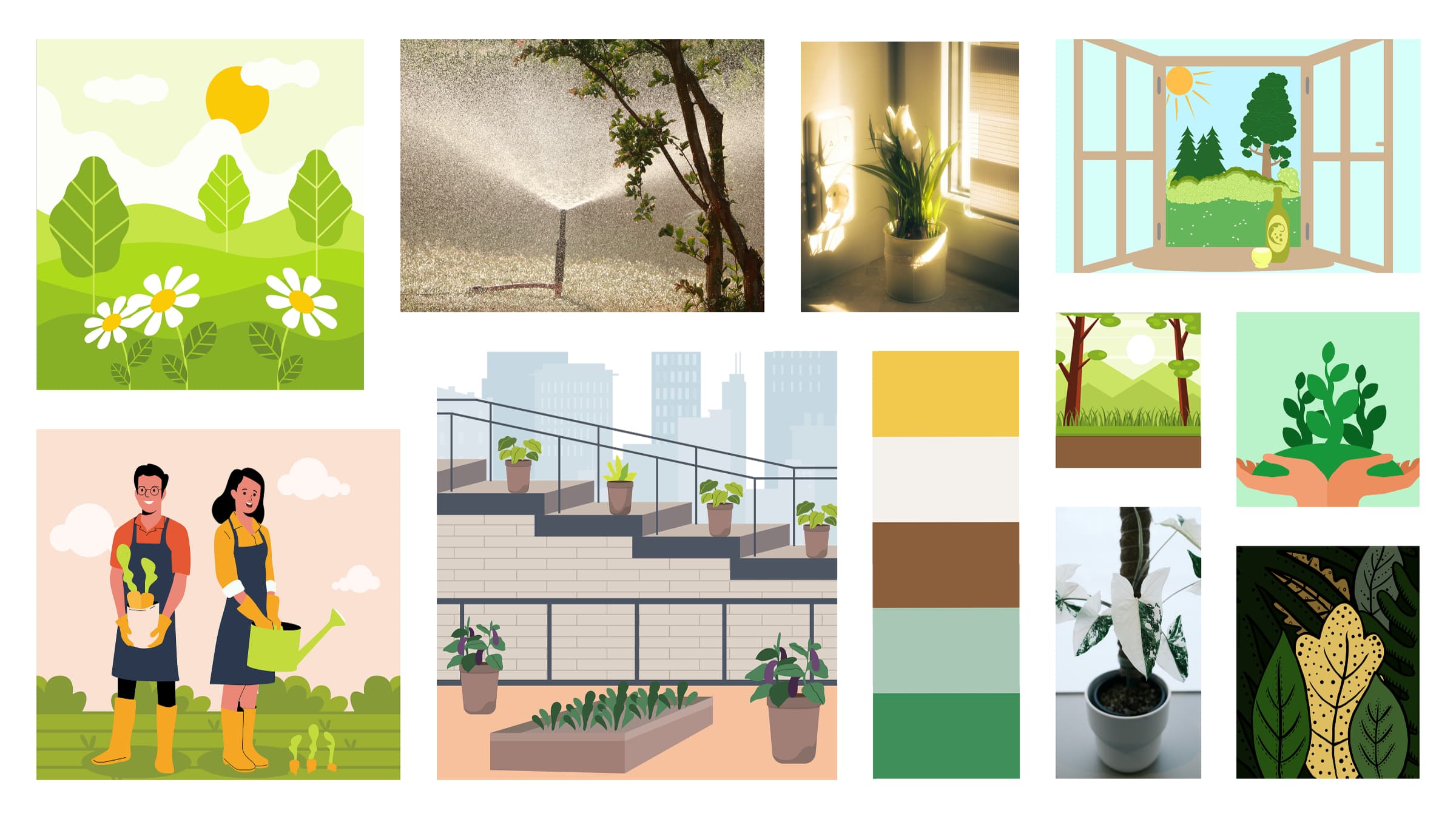 I began by creating a mood board to define the visual direction of the brand. I selected natural colours inspired by plants, soil, and sunlight to create a calm and approachable feel. The typography system uses Maven Pro for headings and Nunito for body text to balance readability and warmth.