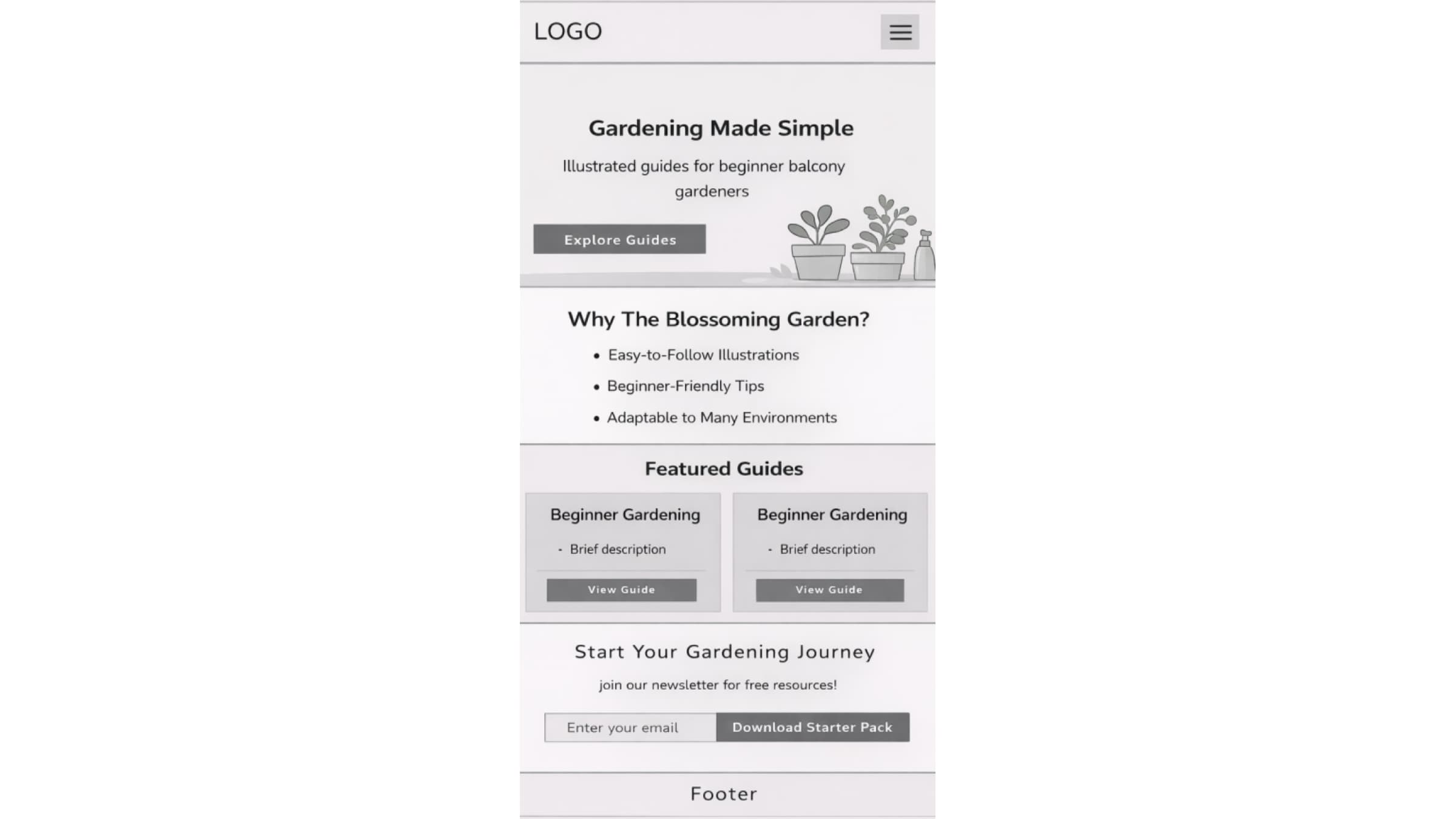 The Blossoming Garden is a container gardening website designed specifically for beginners who want to grow plants on balconies in British Columbia. Many gardening resources are too general or not suited for small urban spaces, so this project focuses on simplifying gardening through clear, structured, and climate-specific content.