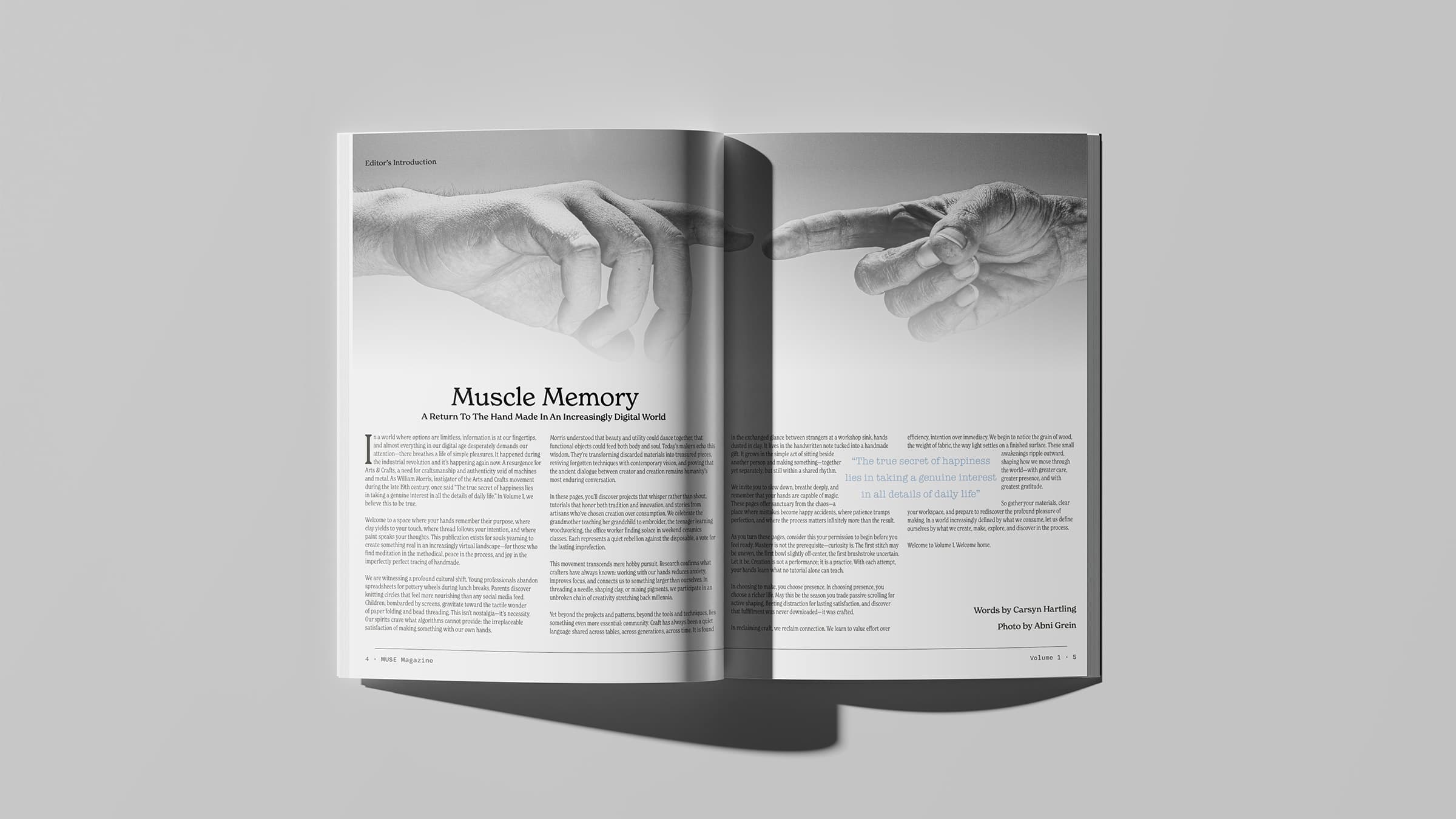 MUSE Magazine is a multi–media arts and crafts publication for the curious and creative. Featuring locally and globally sourced patterns in fibre, clay, photography, and more—readers can enjoy a wide variety of carefully crafted projects at their fingertips. Designed with intention, MUSE aims to foster an open canvas for the creative community of hobbyists who enjoy traditional craftsmanship but with a modern twist.