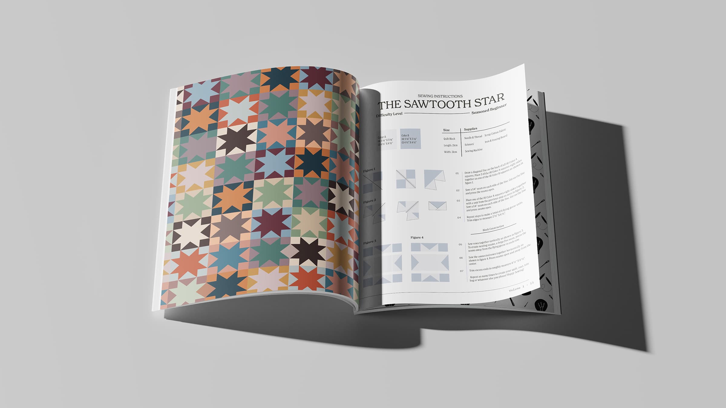 Having selected a subject that encompasses such a dynamic range in content, I had to carefully consider the ways in which layout can be used effectively and consistently. Hierarchy, visual flows, information types, and creative processes all merged together to define the role of each layout formula. For example, incorporating the pattern of a cross–stitch design looks and acts much differently than the written instruction of a knitting pattern. Or, a follow–along craft blends different instructional types than a sewing pattern. These characteristics can be considered obvious, but when handling the page layout with visual forms, styles, and supporting imagery, it requires a systematic approach.