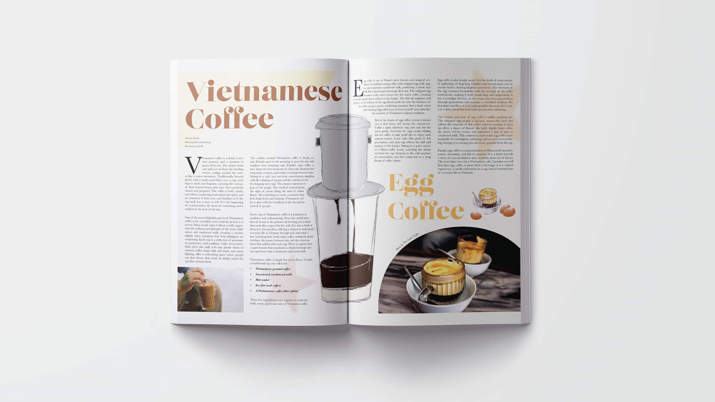 To wrap up, Viet Magazine is more than just a travel magazine, it is a way for me to share my culture through design and storytelling. This project allowed me to combine photography, layout, and illustration to create a cohesive and engaging publication. It also reflects my growth as a designer, especially in creating work that is both visually strong and meaningful.
