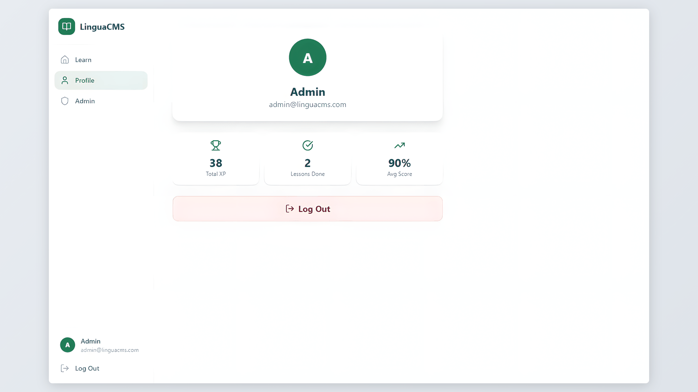 Progress tracking happens automatically. Students earn experience points (XP) for completing lessons, and their profile displays cumulative stats – total XP, lessons finished, and average score. This light gamification keeps learners motivated without overcomplicating the interface.