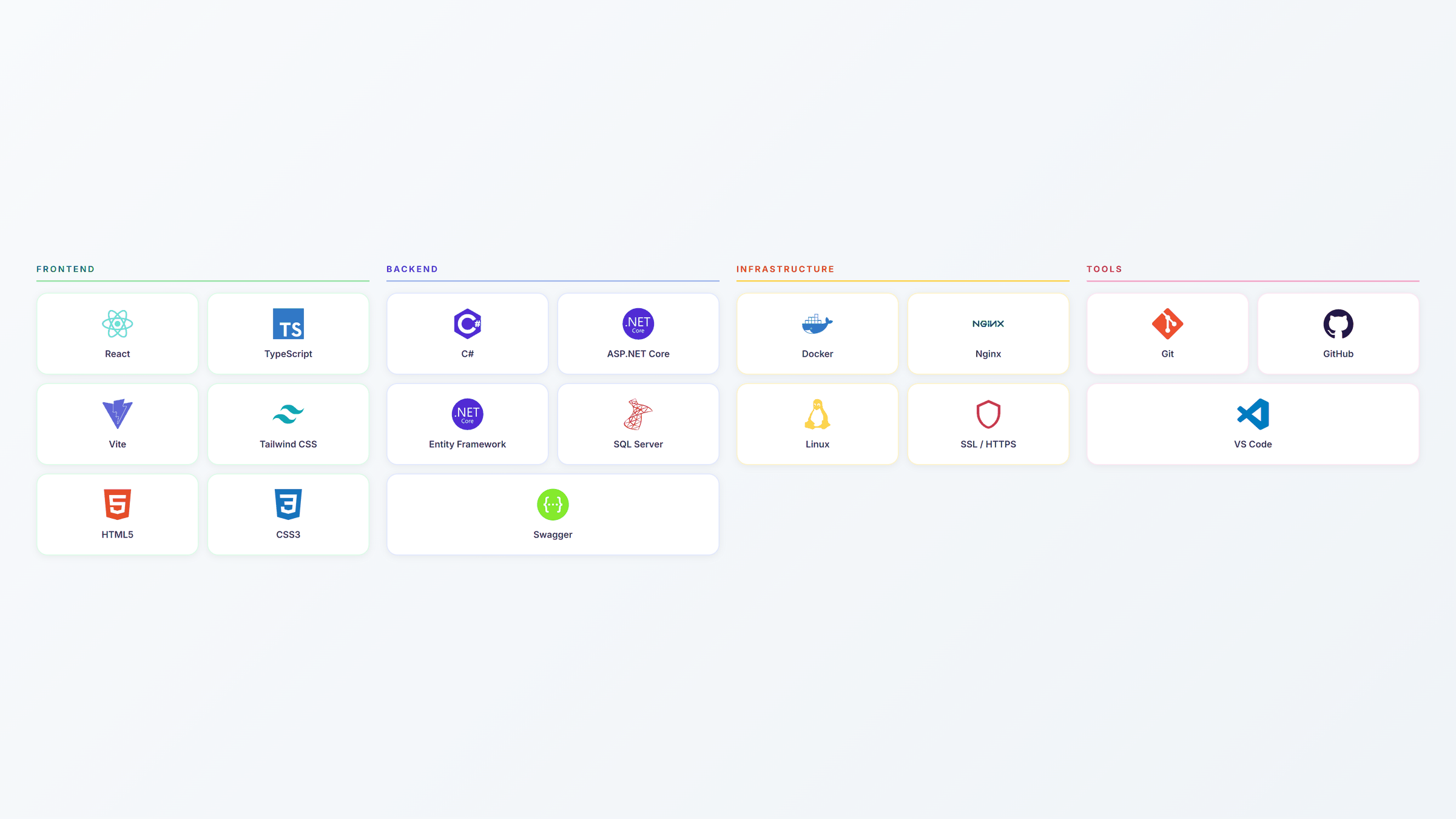 On the frontend, I auto-generate the entire API client from the backend’s OpenAPI specification using openapi-codegen. This eliminates manual type definitions and guarantees the frontend always matches the API contract – when the backend changes, the client updates automatically. Zustand handles authentication state, while React Query manages server data caching and synchronization.