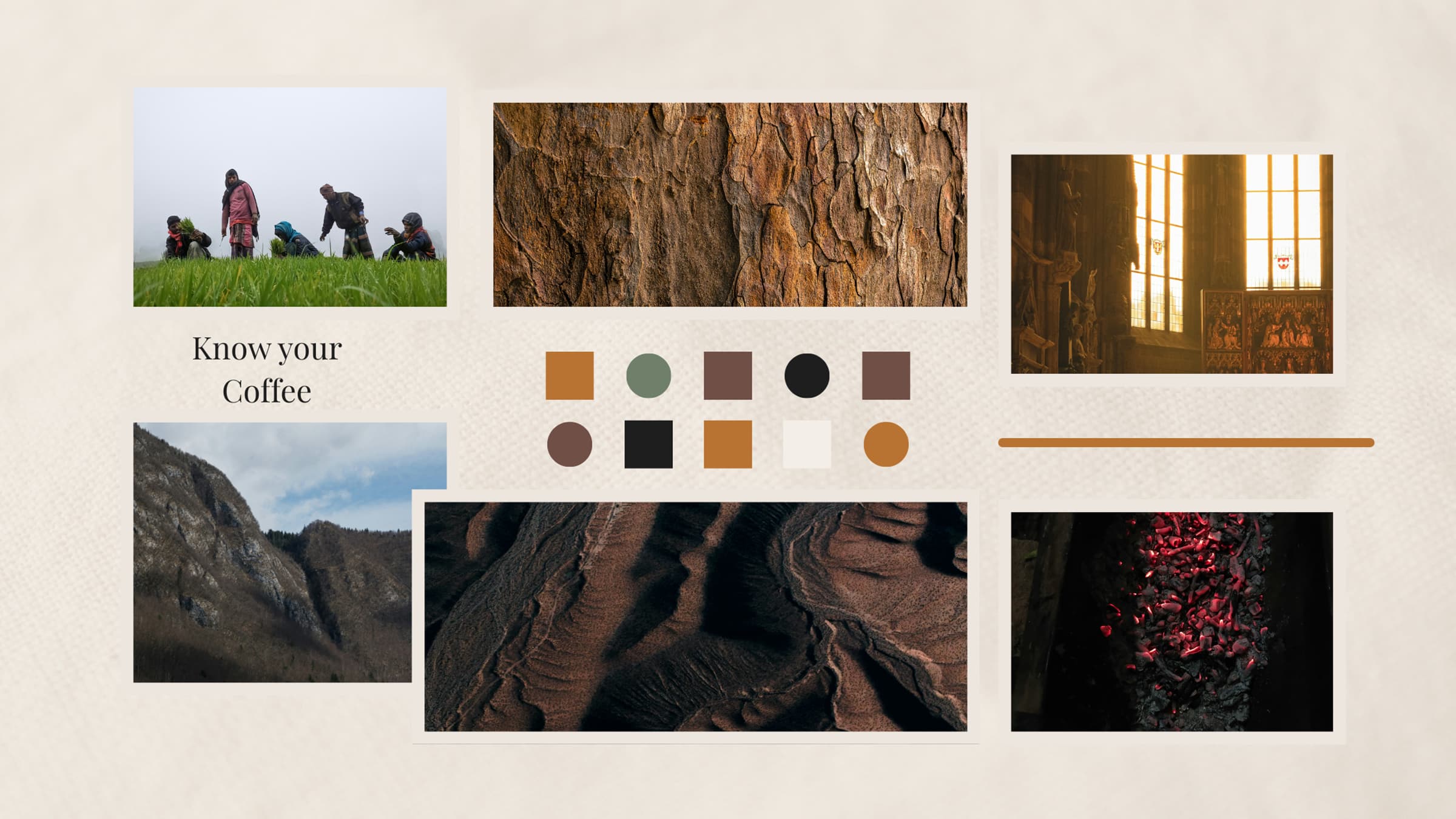 The moodboard for Black Ridge is based on earthly texture and coffee color aesthetics. The goal was to let people know about the message and our story while feeling warm.